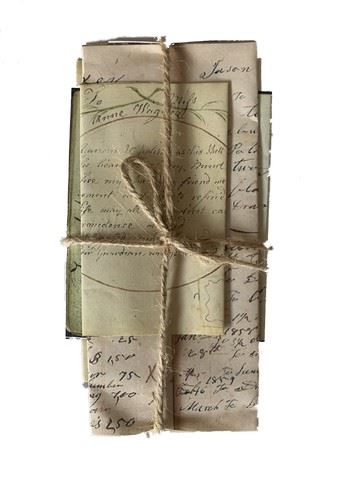 Custom designed by the art department, this is a screen used, tied stack of paperwork from the Candie Plantation.