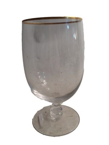 Screen used glass with gold trim around the top and a short stem, used in the bar scene. (5x3)