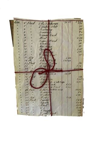 Custom designed by the art department, this is a screen used, tied stack of paperwork from the Candie Plantation.