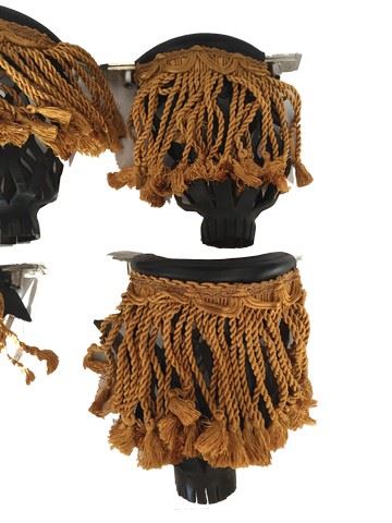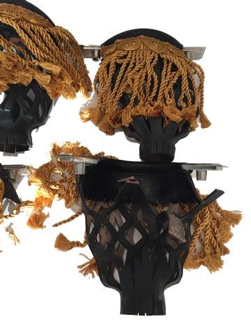 Screen used, straight from the Candie Plantation the 4 pool pockets from the pool table, made of metal leather and woven gold satin yarn, beautiful accent to any table. (10x10)