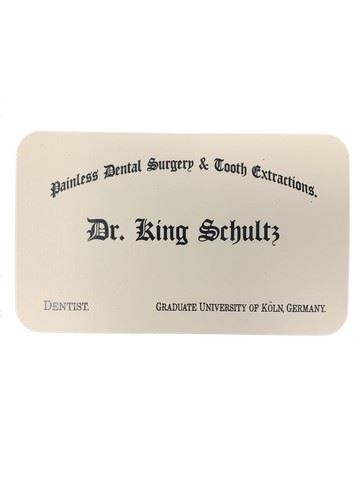 Dr. King Schultz (Christoph Waltz) "Painless Dental Surgery & Tooth Extractions" business card. (approx. 3 3/4" x 2 1/4")