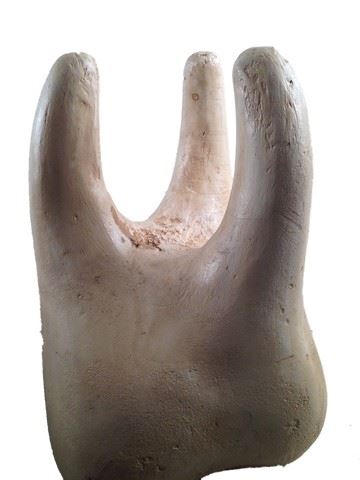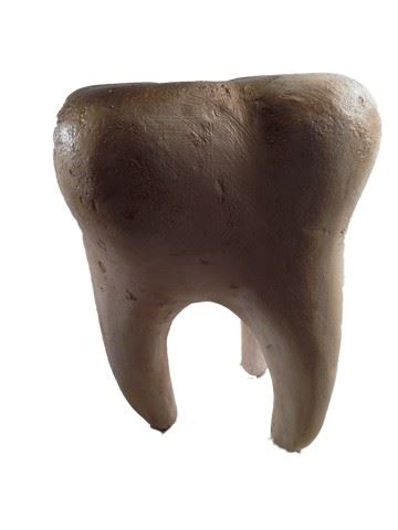 Dr. King Schultz (Christoph Waltz) screen used for special effects, giant molar. This was bolted to the top of his dental wagon in the film. This faux, oversized molar has a gold crown painted on the occlusal surface and has three roots. Made of styrofoam and includes spring (not attached, no attachments included).(28"x15")