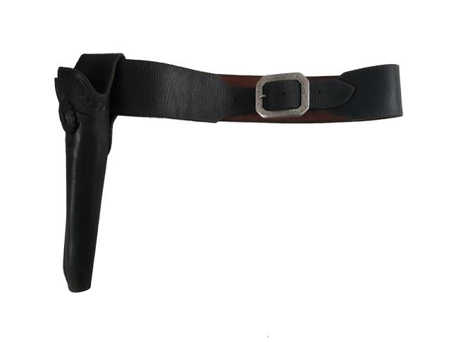 Dr. King Schultz (Christoph Waltz) screen used, hero, worn black leather with metal buckle gun belt with hard black leather gun holster.
