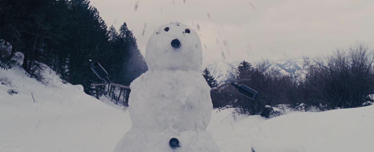 Django (Jamie Foxx) & Dr. King Schultz (Christophe Waltz) screen used, hero, snowman arms used in the snowman scene where they practice shooting. Only one available from production!(20x9)