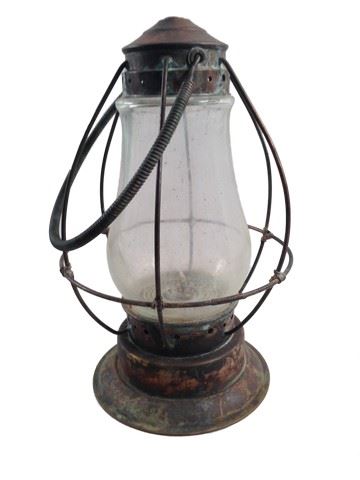 Screen used, heritage lantern, these are used throughout the entire film, glass and rusted out metal with kerosene and a adjustable wick, there is a protective metal guard around the glass.(12x9)