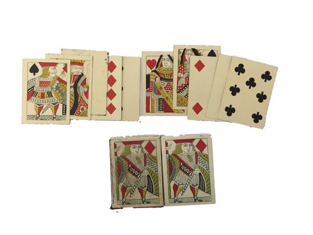 Screen used, set dec, playing cards, set of two boxes and some loose cards, red and gold design on one side and suites on the other, no number on the suite side, other cards with no number, used at the Candie Plantation, card game, ~100 cards. (4x3)