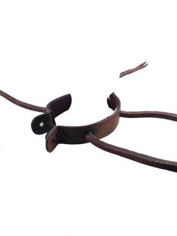 Mississippi slave screen worn, hero, rubber shackle worn around the neck while walking through the town upon Django (Jamie Foxx) and Dr. Schultz (Christophe Waltz) entering the town on horseback. It is a collar with long metal looking (made of rubber with wiring inside) prongs that bend to form their shape.(32x9)