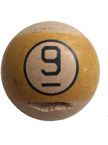 Screen used, pool ball from the "Candie Plantation" used during a pool game, this is the white with yellow stripe #9 ball, the ball has a chunk out of it. (2x2)