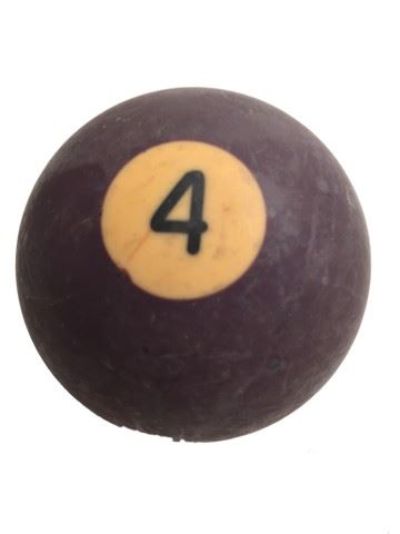 Screen used, pool ball from the "Candie Plantation" used during a pool game, this is the purple #4 ball. (2x2)