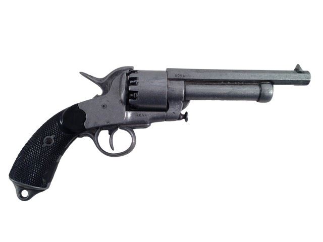 Replica LeMat Revolver Gun. Denix - Made of metal and plastic. (approx. 14" long). Used on set for example or inspiration.