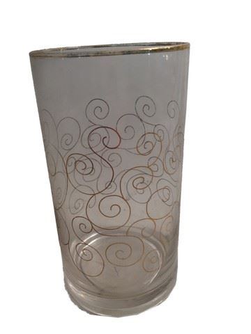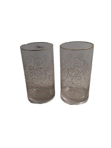 Screen used glasses with gold trim and intricate design of a gold swirl pattern. Used in the Candie Plantation bar scene. Set of two. (5.5x3.5)