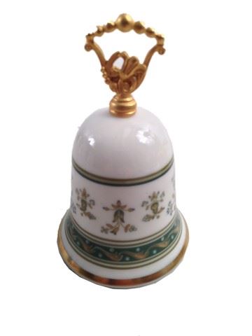 Screen used, "Gorham" fine China servant bell, cream green and gold design.(4x3)