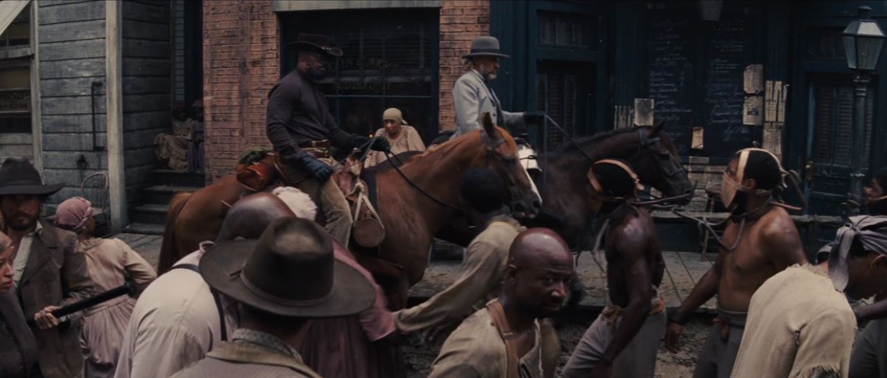 Mississippi Slave's screen worn, brown leather and aluminum face piece worn while walking through the town when Django and Dr. Schultz arrived in Mississippi.(4x3)