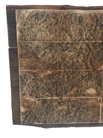 Screen used, set dec, map mounted on plywood, map of Wyoming and Snake River, upper Madison River. (25x18).