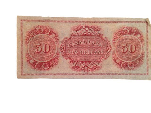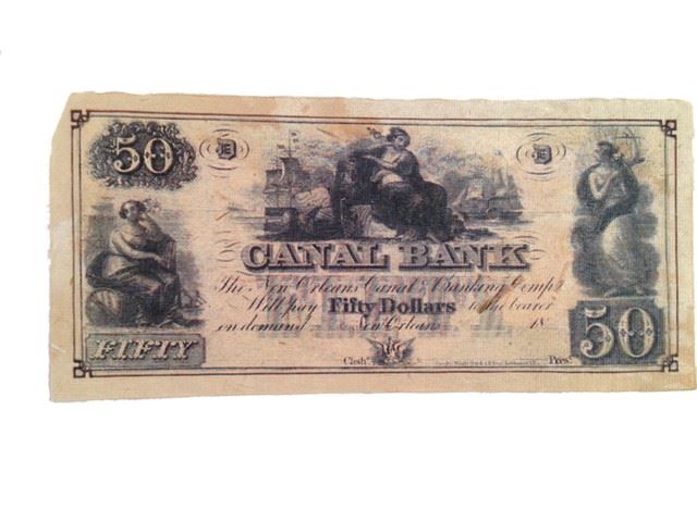 Screen used, "Canal Bank" 50 Fifty dollar New Orleans bank note. (approx. 7" x 3") .