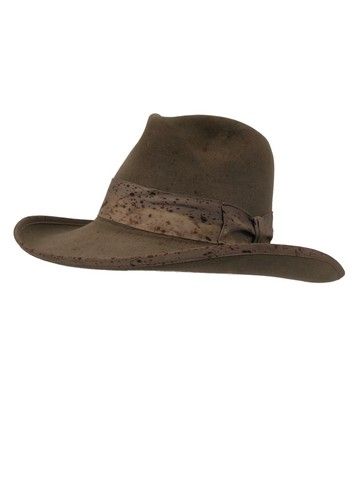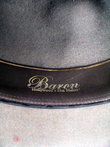 The legendary Baron Hats Studios is proud to have created the iconic hero hats for the main stars of Quentin Tarantino's most recent masterpiece, "Django Unchained" (2012), including the "Little Joe" inspired hat of Jamie Foxx, the "gentleman's" high bowler of Christoph Waltz , plus the hero hats for Leonardo DiCaprio and Samuel L. Jackson. Usually the Master Hatter only makes the "hero" hats for the leads, but, as has been the case in many of Baron's projects, wanting to continue the seamless perfection of a Baron Hat, the producers, directors and costumers insist that the Master Hatter also be assigned to create hats for both the other players, plus the stunts and background. This is a screen used country-crown hat personally crafted by Baron's Master Hatter, Mark Mejia, with grosgrain ribbon hatband and matching binding in 100% Western Weight Fur Felt, created for one of the stunt characters. It carries a true Tarantino trademark, in that it is splattered liberally throughout the hat, brim and crown with "blood"! This is an extremely collectable and unusual treasure from the movie that many are saying is one of Tarantino's best ever. Is installed with the trademark "Baron's: Hollywood's Hatmaker®" leather sewn-in sweatband. Comes with a Letter of Provenience by Master Hatter Mark Mejia. You can check out Baron's amazing history at www.baronhats.com.