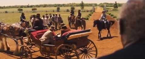 Calvin Candie (Leonardo DiCaprio) screen used, hero, horse drawn carriage used throughout the film. At one point Dr. Schultz (Christoph Waltz) is invited to join the ride to the Candyland Plantation. This carriage is life size and has been stored in archives since the production wrapped. There is some wear to the wooden wheels from use on set and transpiration to storage. This was the only carriage used during filming.