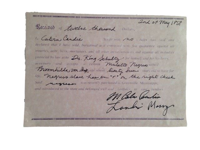 Dr. King Schultz (Christoph Waltz) screen used, legal document signed by Calvin Candie (Leonardo DiCaprio). Condition may vary slightly.
