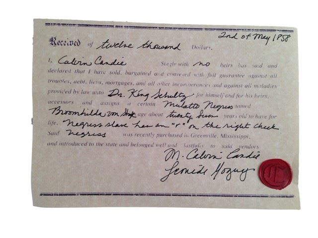 Dr. King Schultz (Christoph Waltz) legal document signed by Calvin Candie (Leonardo DiCaprio).