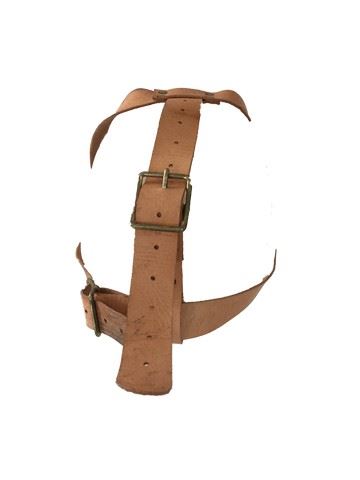 Screen worn, tan leather face restraint with gold metal hooks, covers entire face with only eye exposure. (5x12)
