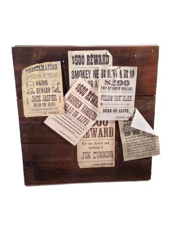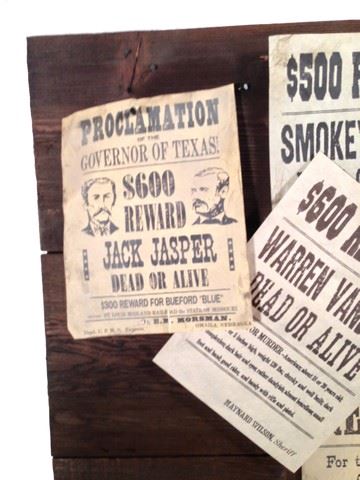 "Wanted" signs wood board used as set decoration in the film. This is a lage wood board with six different wanted posters nailed onto it.(33"x35")