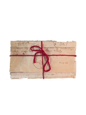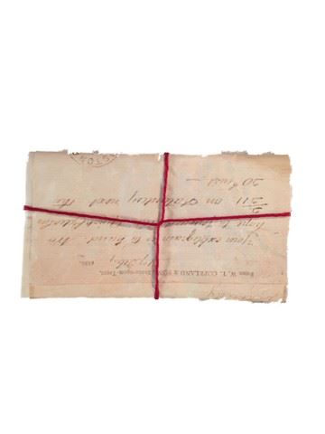 Custom designed by the art department, this is a screen used, tied stack of paperwork from the Cleopatra Club.