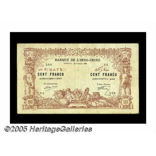 <B>Djibouti. Pair of Scarce Types, </B></I>P5 100 Francs 2-1-1920, nice F-VF, some pinholes as always and two repaired tears in the margin, and P10 1000 Francs (1938), F-VF, small tears in the margin and tape stains. Two scarce, high denomination types. <B>Sold as is, no return lot.</B></I>