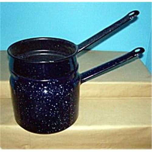 <tr><td>Title:Dk. Blue Graniteware Double Boiler</td></tr>