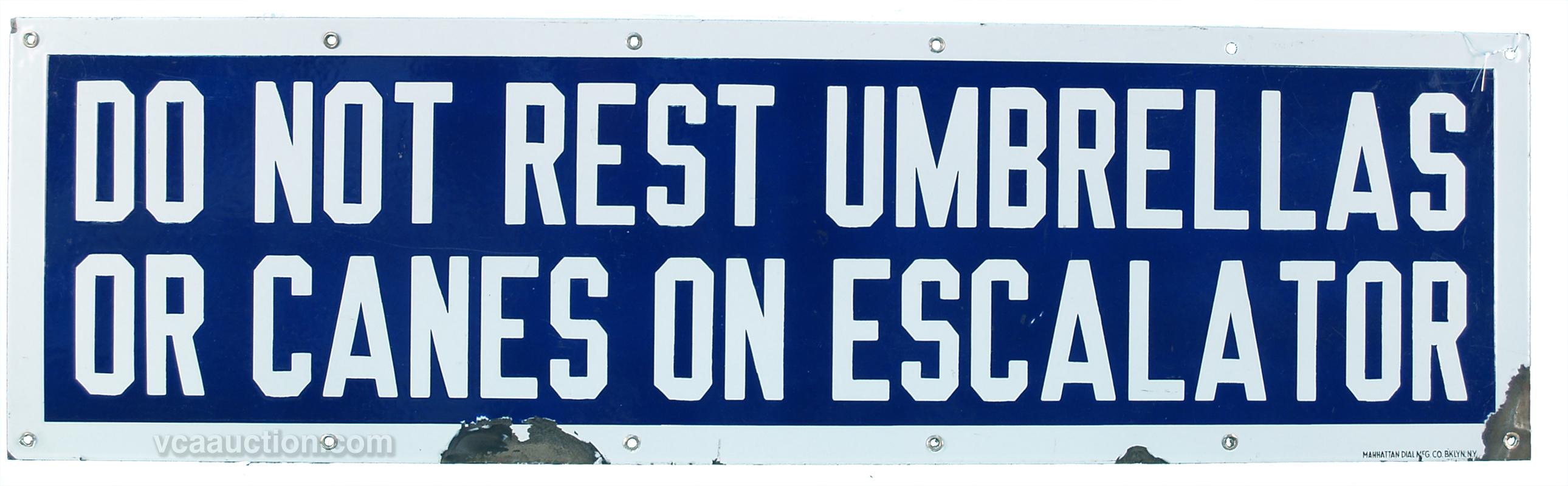 Do Not Rest Umbrellas Or Canes On Escalator Porcelain Sign - 36" x 10"