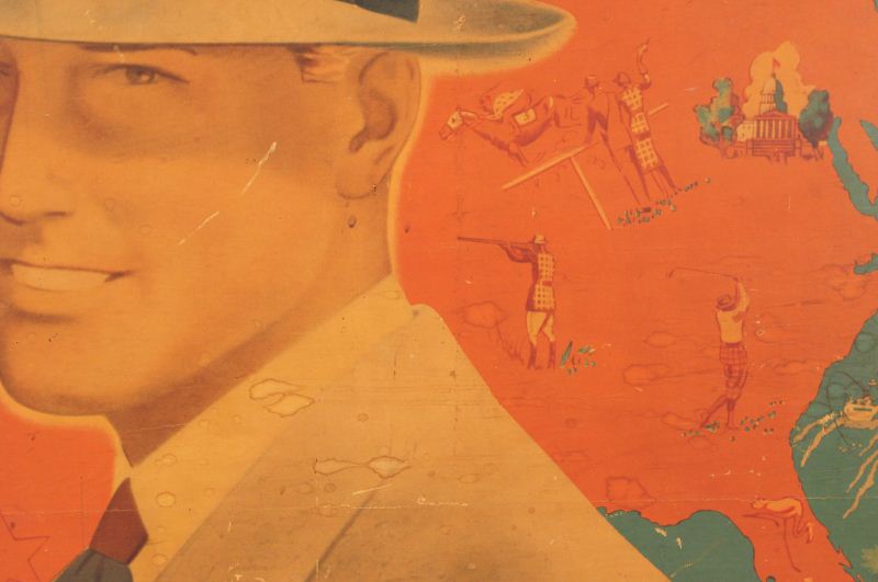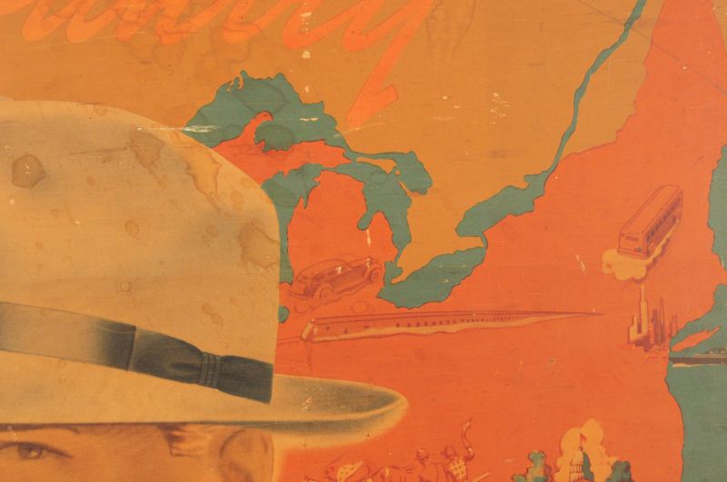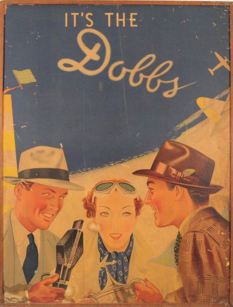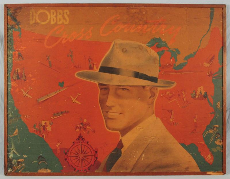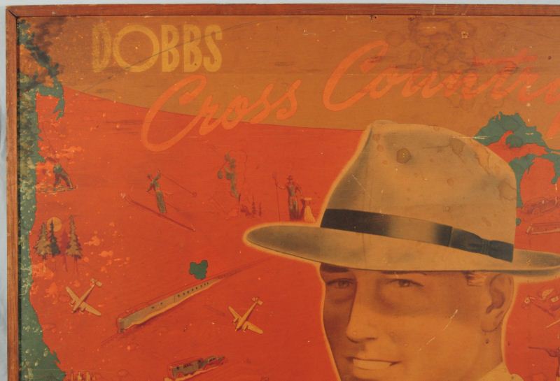 Dobbs Hats Two Sided Advertisement Board. Cross Country on One Side and Its the Dobbs on the Other. Measures 41"x52"