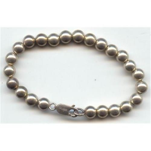 This handsome Sterling Silver beaded bracelet measures just over 7 inches long. The beads are approximately 6mm and strung onto silver chain, not thread for a long life. There is a lobster claw clasp which is marked, 925 DOBBS, for sterling.