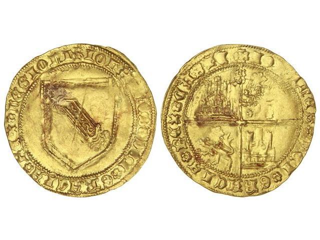 Dobla de la Banda. JUAN II. SEVILLA. Anv.: ¶IOHANES*DEI*GRACIA*REX*LEGIONI. Escudo. Rev.: ¶IO(HA)NES*DEI*GRACIA*REX*CASTE. Castillos y leones cuartelados, encima S. AU. FAB-617. MBC+.