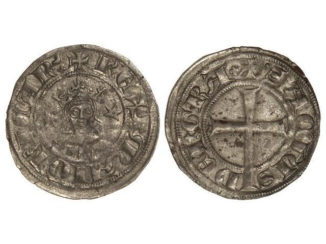 Dobler. - SANÇ DE MALLORCA. - Anv.: ¶REX:MAIORICAR:. Efigie coronada entre estrellas. Rev.: ¶SACIVS-DEI:GRA¶. (Manchitas). CruVS-547. EBC-. - -