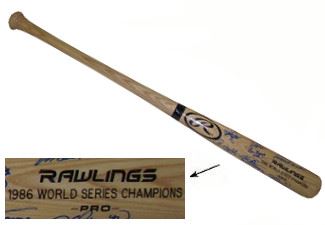 The 1986 New York Mets season was the Mets' 25th season in the National League. They improved from a 98–64 record in 1985 to finish the season with a franchise record 108–54 record, giving them the division title. They went on to defeat the Houston Astros in six games in the NLCS and the American League champion Boston Red Sox in seven games in the World Series. This Rawlings Pro Engraved Blonde Bat is signed by: Barry Lyons, Doc Gooden, Darryl Strawberry, Mookie Wilson, Lee Mazzilli, Lenny Dykstra, Tim Teufel, Rick Anderson, Keith Hernandez, Wally Backman, Rafael Santana, Kevin Elster, Terry Leach, Roger McDowell, Randy Niemann, Ed Hearn, Danny Heap, Bruce Berenyi, Dave Magadan, Ed Lynch, Howard Johnson with HOJO inscription, Davey Johnson with 86 WS CHAMPS inscription, Jesse Orosco with LAST OUT inscription, and Ray Knight with MVP inscription. MAB Hologram and Certificate of Authenticity from Athlon Sports Collectibles.