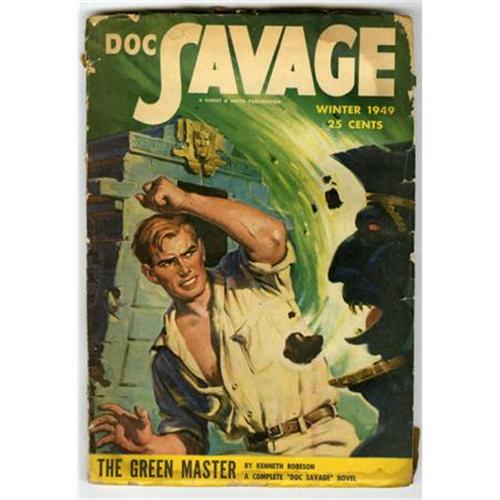<B>Doc Savage/Shadow Group (Street & Smith, 1939-49).</B></I> Includes the May 1939 (GD) and Winter 1949 (GD, some water damage) issues of <B>Doc Savage</B></I>; the January 15, 1940 issue of <B>The Shadow</B></I> (VG-), and the 1942 <B>Shadow Annual </B></I>(VG). Approximate Bookery's Guide to Pulps value for group = $200.<BR><BR><b>Shipping:</b> Comics - Unslabbed (<a target="_blank" href="http://www.heritageauctions.com/common/shipping.php">view shipping information</a>)