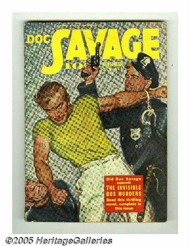 <B>Doc Savage V18#3 (Street and Smith, 1941) Condition: FN+.</B></I> Doc fights the law -- will the law win? Featured cover story is "The Invisible Box Murders." Very nice copy, fresh and supple. The Ultimate Guide to the Pulps VG value = $45.