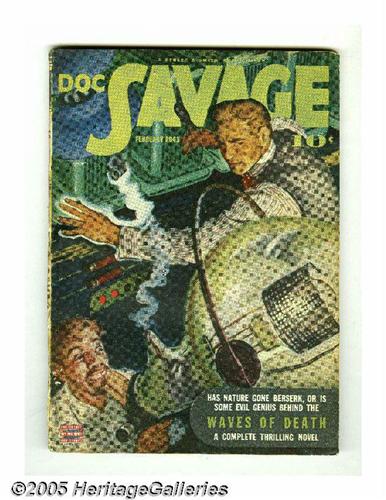 <B>Doc Savage V20#6 (Street and Smith, 1943) Condition: FN+.</B></I> Has science gone berserk? Of course it has; this is a <B>Doc Savage</B></I> pulp after all... and a nice copy, too! Cover story is "Waves of Death." The Ultimate Guide to the Pulps VG value = $45.