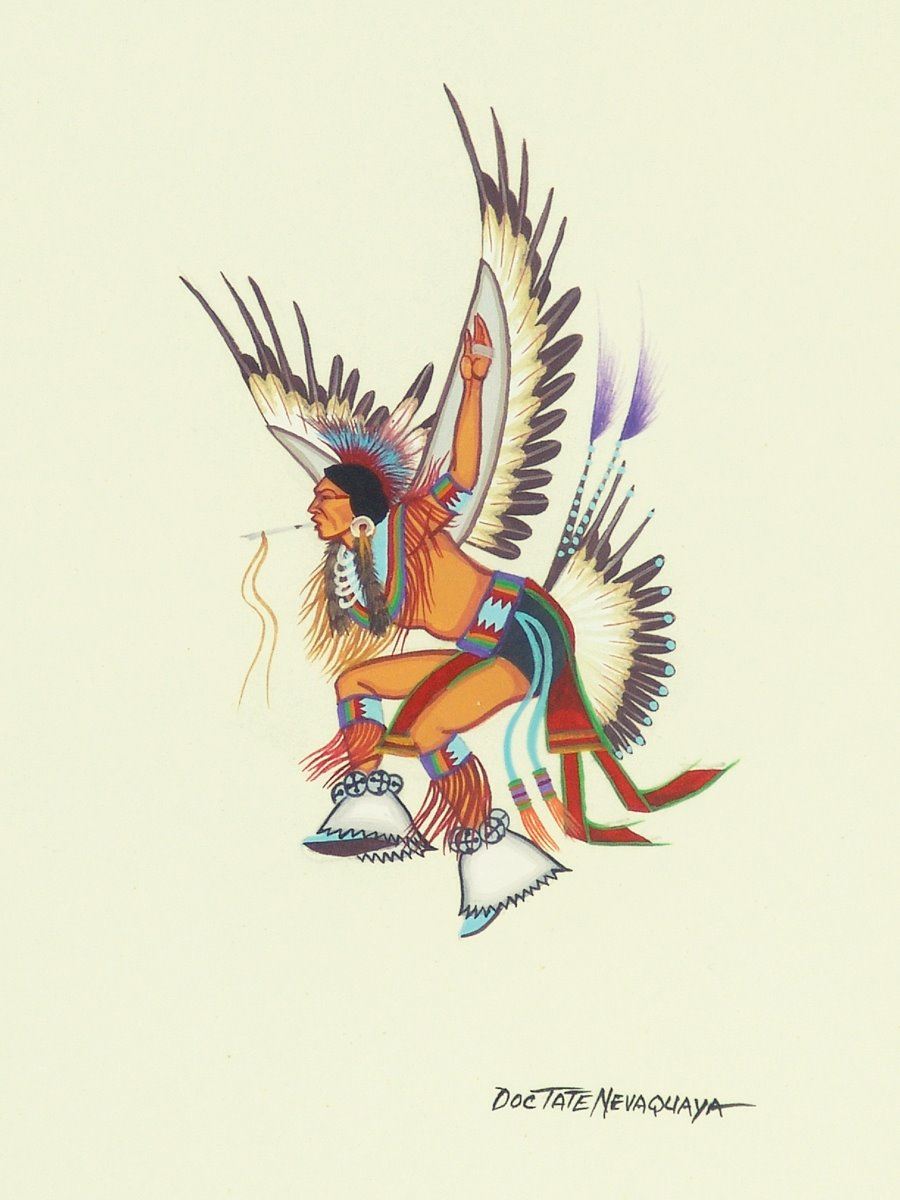 Small very fine signed original gouache, a depiction of a Southern Plains Eagle dancer. Very good condition.,,8" x 6" (12" x 10")
