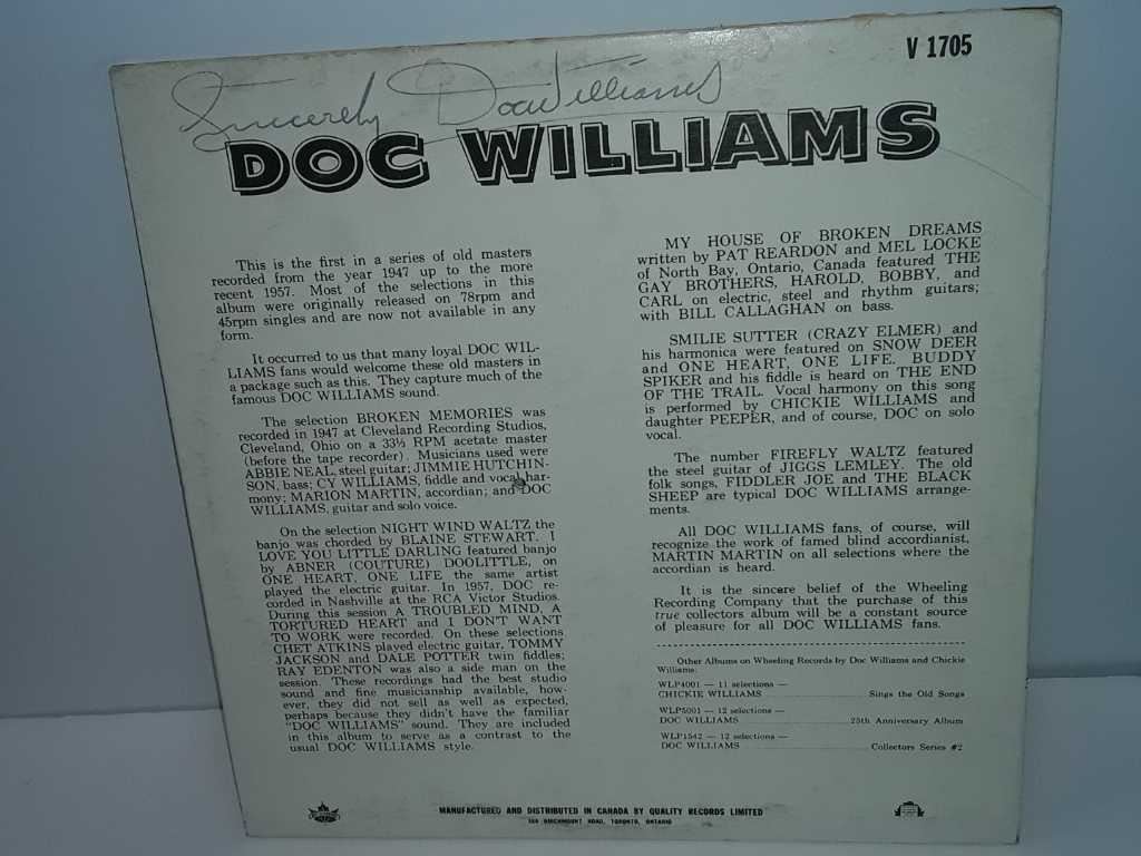 Doc Williams collector series number one quality records in good condition appears to be autographed