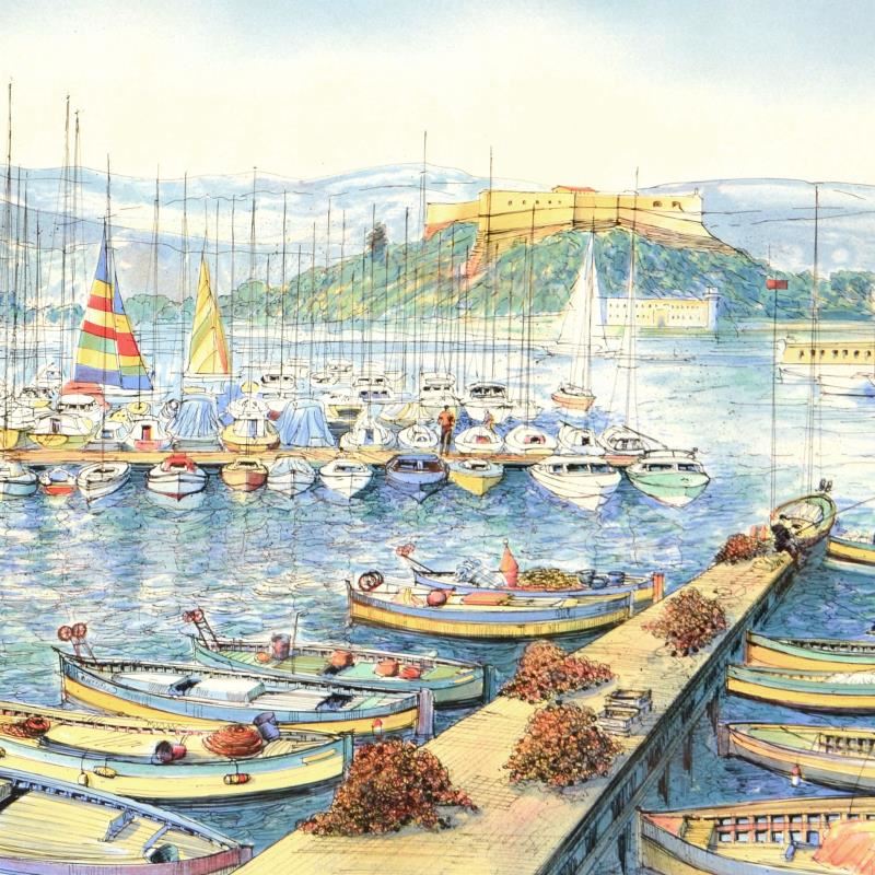 "Docks" is a limited edition lithograph on paper by Rolf Rafflewski, numbered and hand signed by the artist! Measures approx. 30" x 22" (border). 27" x 19" (image).