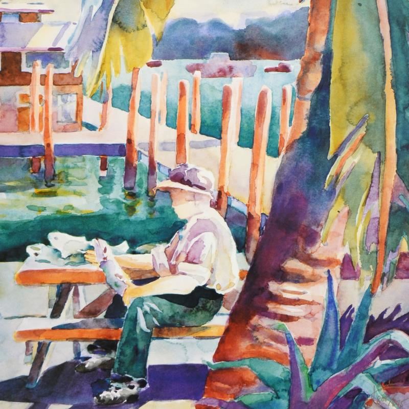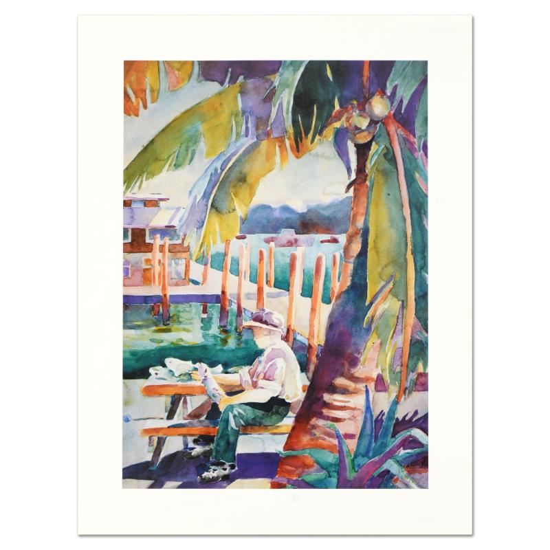 "Dockside Catch" is a limited edition embossed lithograph on paper by Sissi Janku, numbered and hand signed by the artist. Measures approx. 19.5" x 25.5" (image). There are very minor creases on the top-middle part of the image.