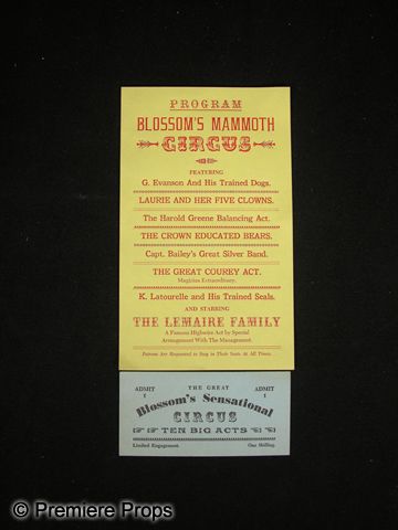 Ticket and program for Blossom's Mammoth Circus, the extravaganza featured in Doctor Doolittle (1967). Blossom's Circus is run by Albert Blossom, a greedy showman who exhbits the Pushmi-Pullyu as a star attraction. (8.bx5.5, 5x3)