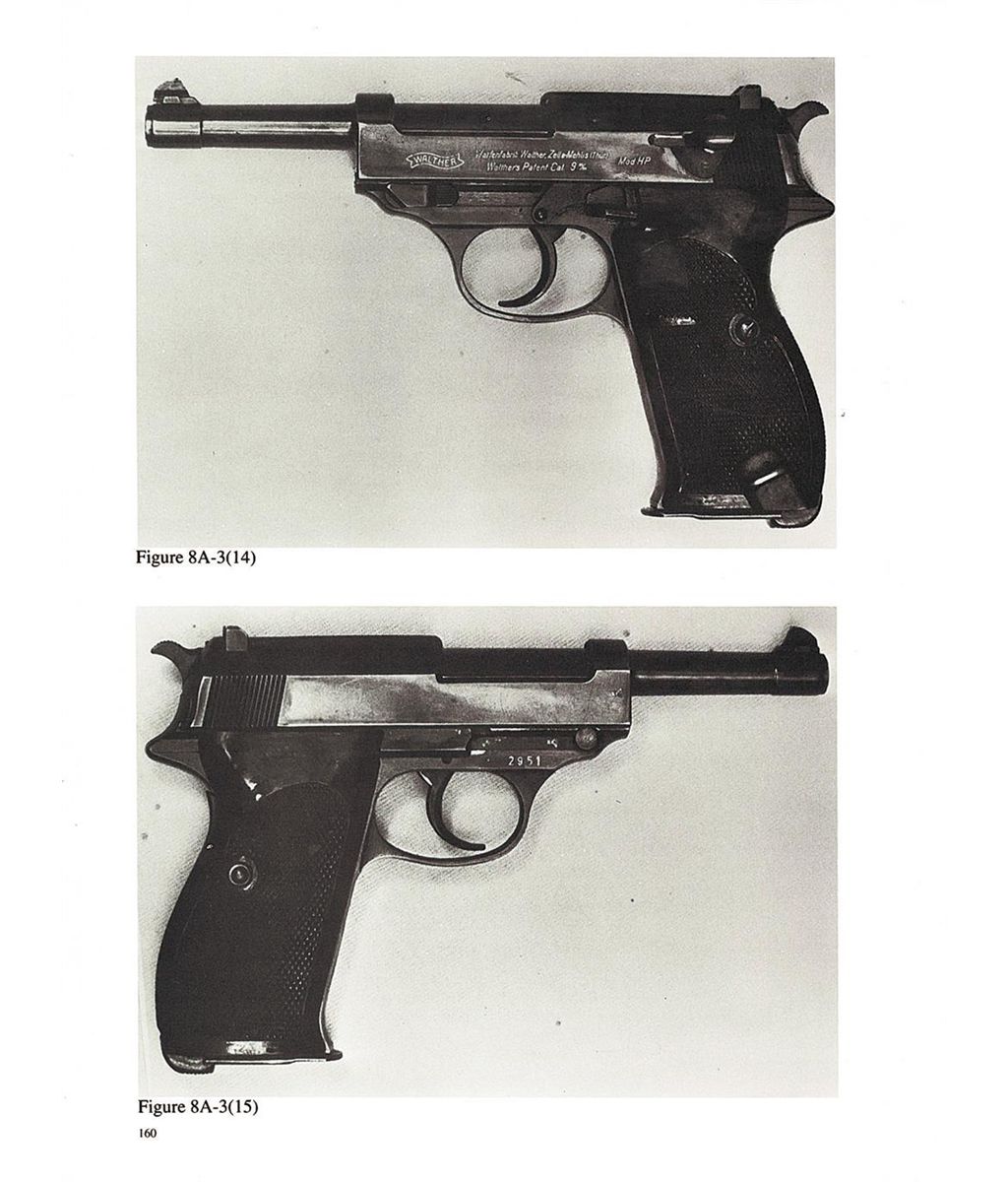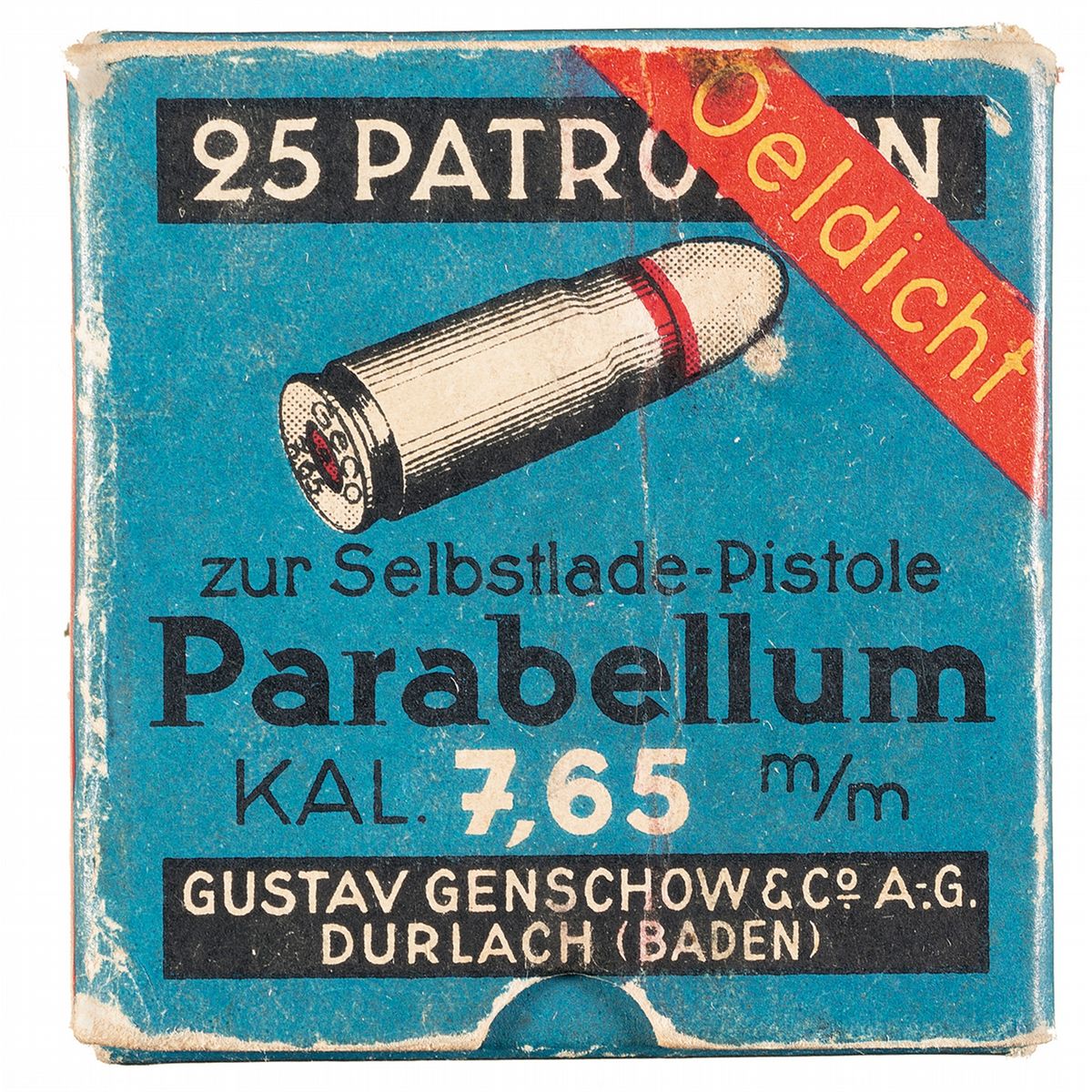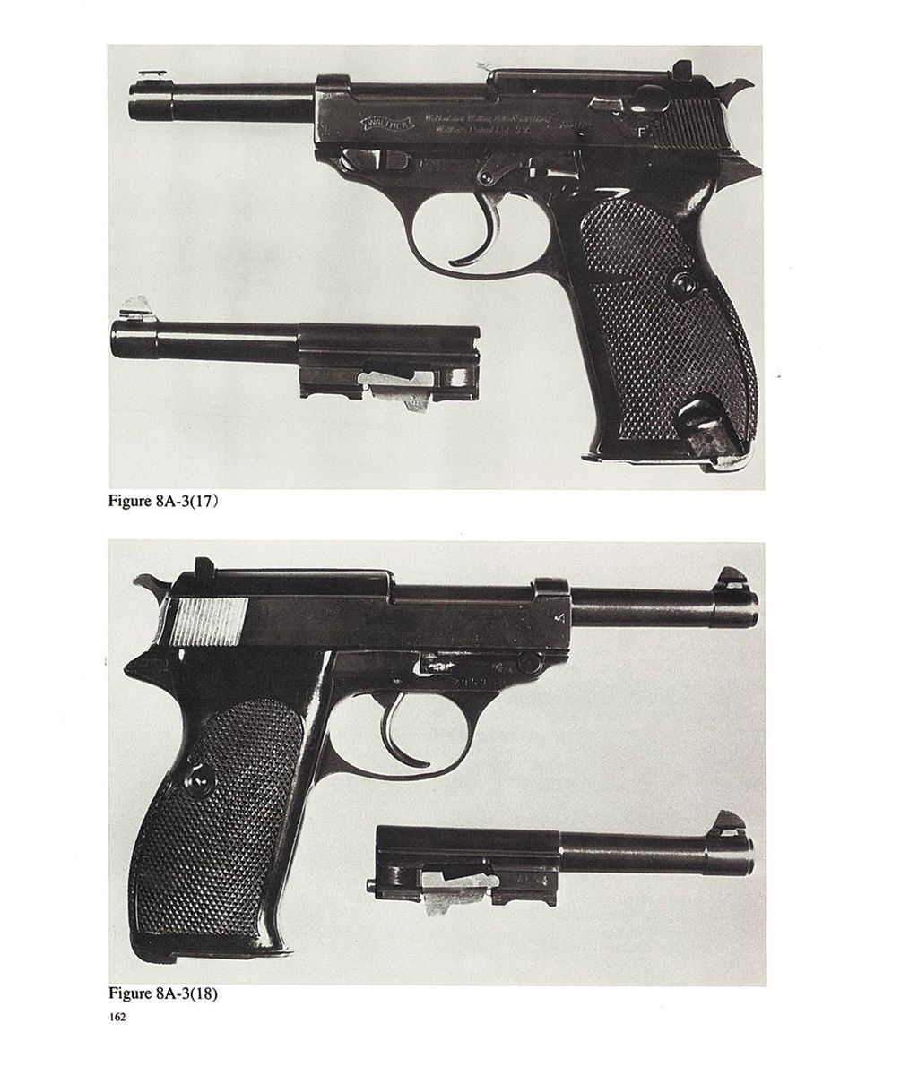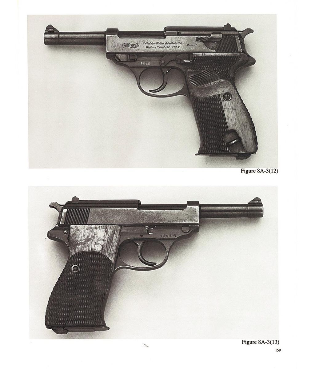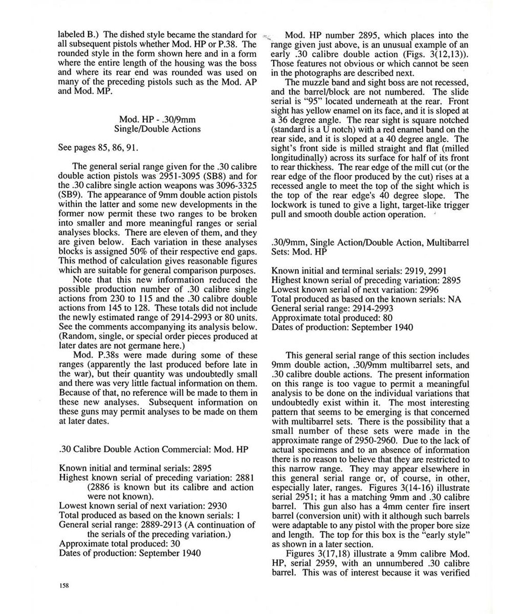 Shortly after Walther began the sale of the commercial model of their P.38 pistol known as their Model HP pistol, they produced a small number of guns in caliber 7,65 m/m (.30 caliber) Parabellum rather than the normal caliber of 9 m/m. Note that with a P.38 pistol, the barrel assembly can easily be switched to the different caliber barrel and no other modifications are needed to the mechanics of the pistol. The serial numbers of the 7,65 m/m Model HP pistols reportedly begins just below serial 3000. Prior to the production of these 7,65 m/m Model HP pistols, Walther manufactured and sold a very small number of 9 m/m caliber Model HP pistols with an extra barrel assembly in caliber 7,65 m/m. On all of these pistols, the slide is marked 9 m/m. Refer to pages 158-162 in Buxton's Volume 3 "The P.38 Pistol" for a discussion of these pistols with the extra barrel. Some of these pistols with the extra barrel had the extra barrel serial numbered to the pistol, but others did not have a serial number on the extra barrel. Pistol serial number 2951, shown on pages 160 and 161, has the extra barrel serial numbered. This pistol, serial 2959, has the extra barrel without a serial number, and this exact pistol is discussed starting at the bottom of pg 158-161 and is pictured on page 162. This pistol's serial number is also listed on page 252, along with a 7,65 m/m Luger auto barrel (no gun) serial numbered 2953. From these few surviving serial numbered pistols it can be concluded that the guns delivered with the extra barrel are all found in a small group of guns roughly around serial number 2950. Also, as noted on page 161, all of the extra 7,65 m/m barrels, whether serial numbered or not, are finished in a plum color to easily distinguish them from the blued 9 m/m barrel. Buxton notes on page 161 that "several more of these multi-barrel sets with unnumbered .30 caliber barrels were recorded in Swedish and European collections, but no serial numbers were available." This pistol is "Eagle N" proofed on the right side of the slide, frame, barrel assembly and barrel locking block. The serial number 2959 is on the front below the barrel, on the right side of the frame, on the rear underside of the slide, and "959" is stamped on the barrel locking block. The left grip has the lanyard area milled away which is proper for commercial Model HP pistols in this serial range. The magazine is correct for this model having no markings and a dusty blue finish. A second proper Commercial Model HP magazine is also provided with the pistol. The extra barrel is "Eagle N" proofed on both the right side of the barrel extension where it is also marked with a circle B and "45" and also the un-numbered removable barrel locking block is proofed with the "Eagle N' on the right side and marked "48" on the left side. According to the consignor, this pistol was imported from Sweden some 30 years ago and to the best of his knowledge it is probably the only such extra barreled Model HP pistol that exists in a United States collection today! This makes this pistol very rare and it should be noted that it is also in very top collector condition which further adds to its rarity. Along with this rare pistol and extra barrel and magazine, also included is an original period box (25 rounds) of Geco 7,65 m/m Parabellum ammunition to go with the extra barrel. Also included is an original sales foldout announcing the new Model HP (P.38) Commercial pistol. This foldout is dated 4.38 and is the first commercial sales brochure published for the new Model HP pistol. The pistol drawing on the front and inside page shows a gun with checkered wooden grips and a pre-production slide legend markings. This is a rare sales document printed on both sides for a total of 6 pages of information.