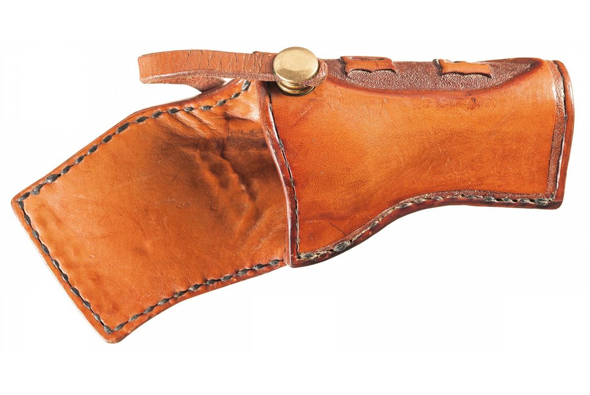 Excellent. The revolver retains 95% plus original blue finish showing some loss at the muzzle, some light high edge wear and cycling marks on the cylinder. A patch of minor pitting is present on the front strap. The frame retains 97% plus original case colors. The grips are very fine with some minor handling marks. The holster is excellent as homemade.