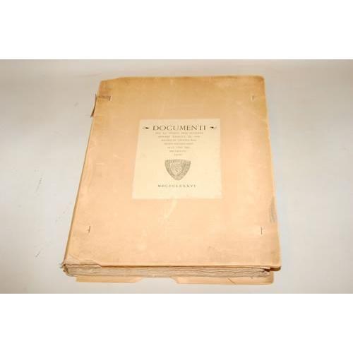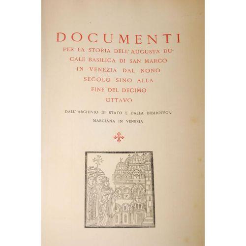 Documenti Per La Storia Dell' Augusta Ducale Basilica Di San Marco in Venezia Dal Nono Secolo Sino Alla Fine Del Decimo Ottavo. Venezia: Ferd. Ongania, 1886. Elephant Folio - over 15" - 23" tall. Ex-Library. Good Condition. LIMITED - #429/600. State documents of Venice, from the time of Augusta, Duke of San Marco, from the Archives of the State Library in Venice. Chromolithograph frontis with tissue guard, additional text illustrations and plates in the back. xxx [2] 308pp, bound in paper vellum, with hard stock portfolio (has chips & lacking ties). Occasional foxing.