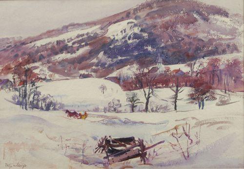 Dodge MacKnight (1860-1950). "Winter Sledding". 16" x 23 ½”. Watercolor. (est $3,000-4,000).