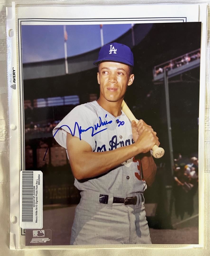 MLB Authentic signed color photo of Maury Wills.10x 8" with Certificate & Catalog number, signed "Maury Wills 30".