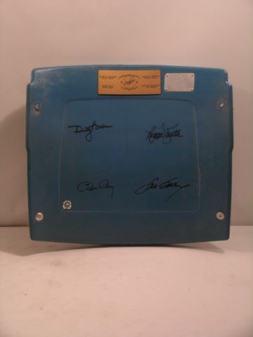 Dodgers Record Setting 30 Homeruns Limited Edition plastic chairback with a plaque on the front and signed by Dusty Baker, Reggie Smith, Ron Cey, and Steve Garvey. Includes the seat number 2. Purchased directly from Dodger Stadium and there are no others available like this with the signatures and seat number available for sale. (approx. 19 1/2" x 17)
