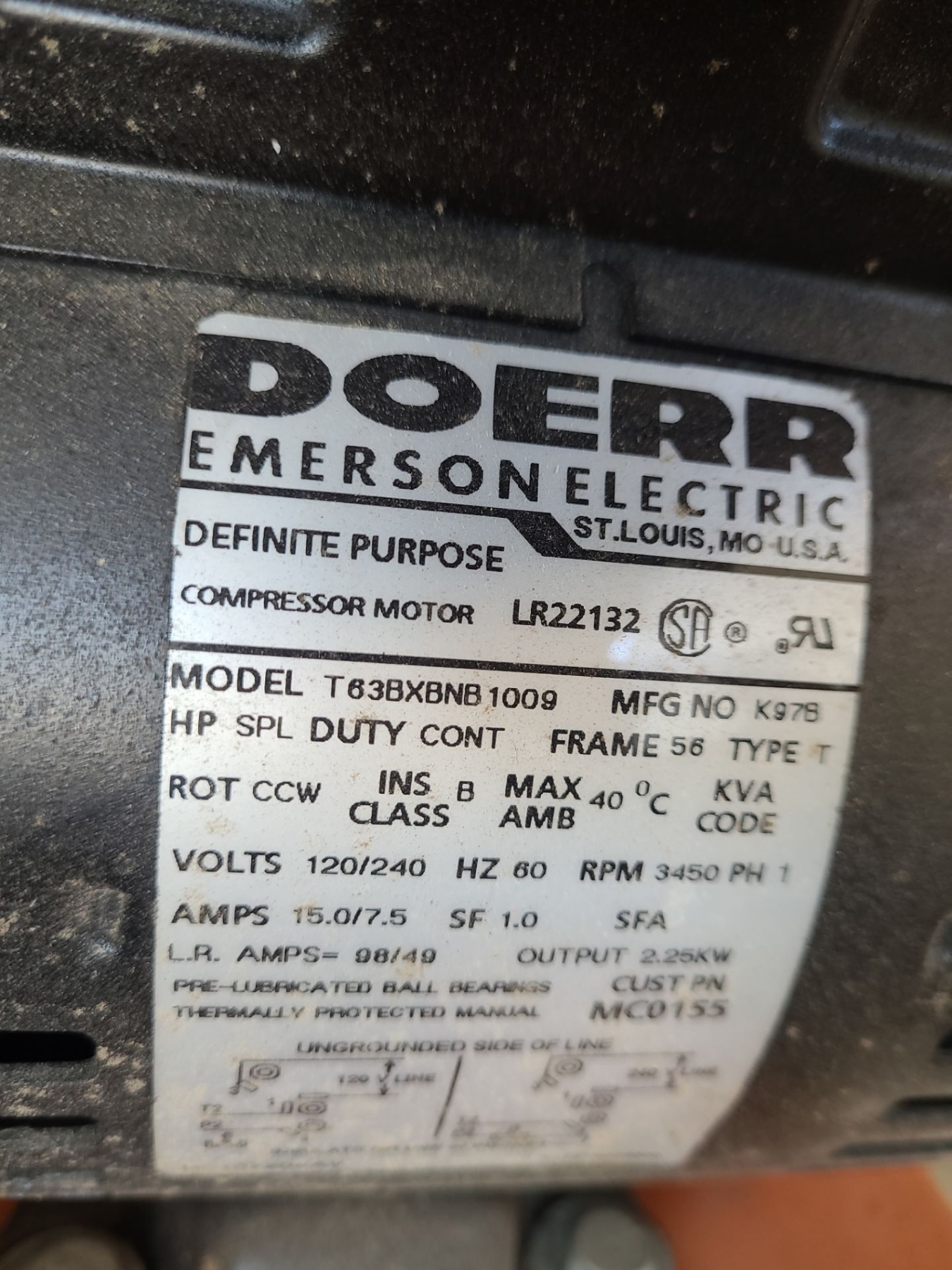 Doerr Emerson Electric Compression Motor Model LR22132