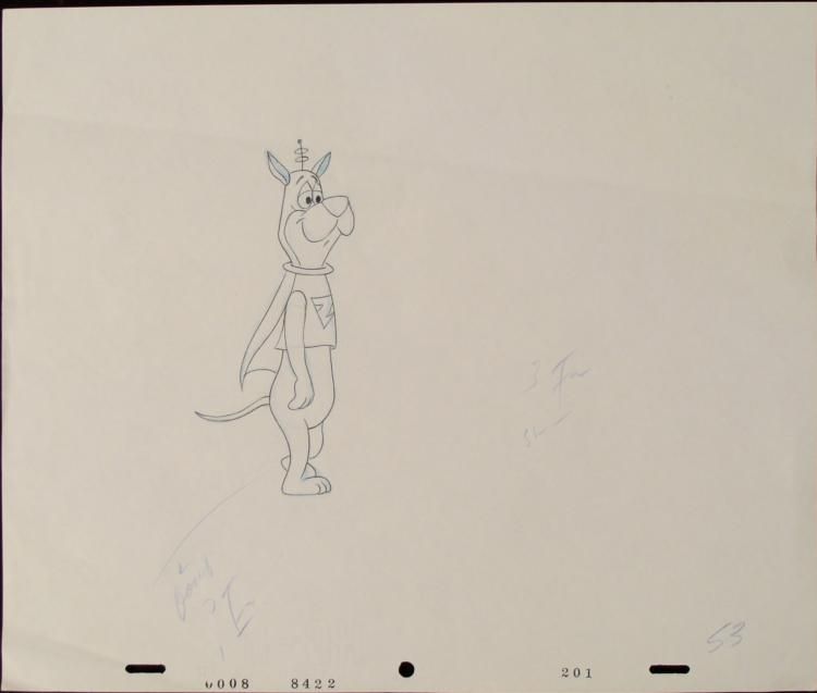 Astro is the best dog ever! Original Animation DrawingDetails: Animation notations and peg holes Original "rough" animation drawing, in non-photo blue and black pencil Size of drawing: 10 1/2 x 12 1/2 inches Condition: Very good Traditional a